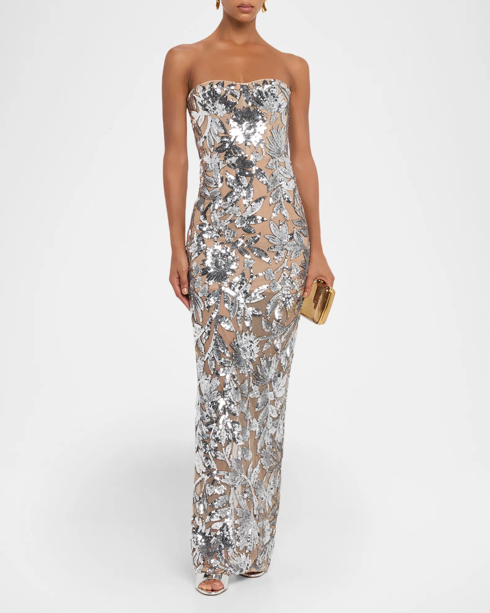Gown Dahlia Strapless con Bordado Floral en Lentejuelas