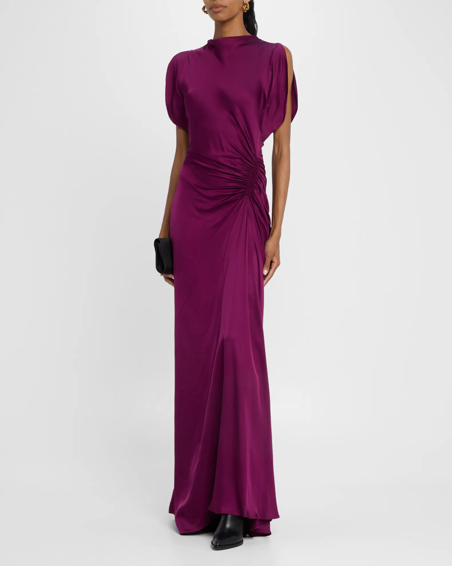 Un vestido de gala pensado para mover la mirada desde el primer paso. El satén fluye con una suavidad luminosa que envuelve la silueta, mientras el drapeado artesanal crea un efecto esculpido y elegante. El diseño combina sofisticación y movimiento, ofreciendo una caída impecable y un estilo que brilla en ceremonias, galas y noches inolvidables. Una pieza que transmite presencia sin esfuerzo.