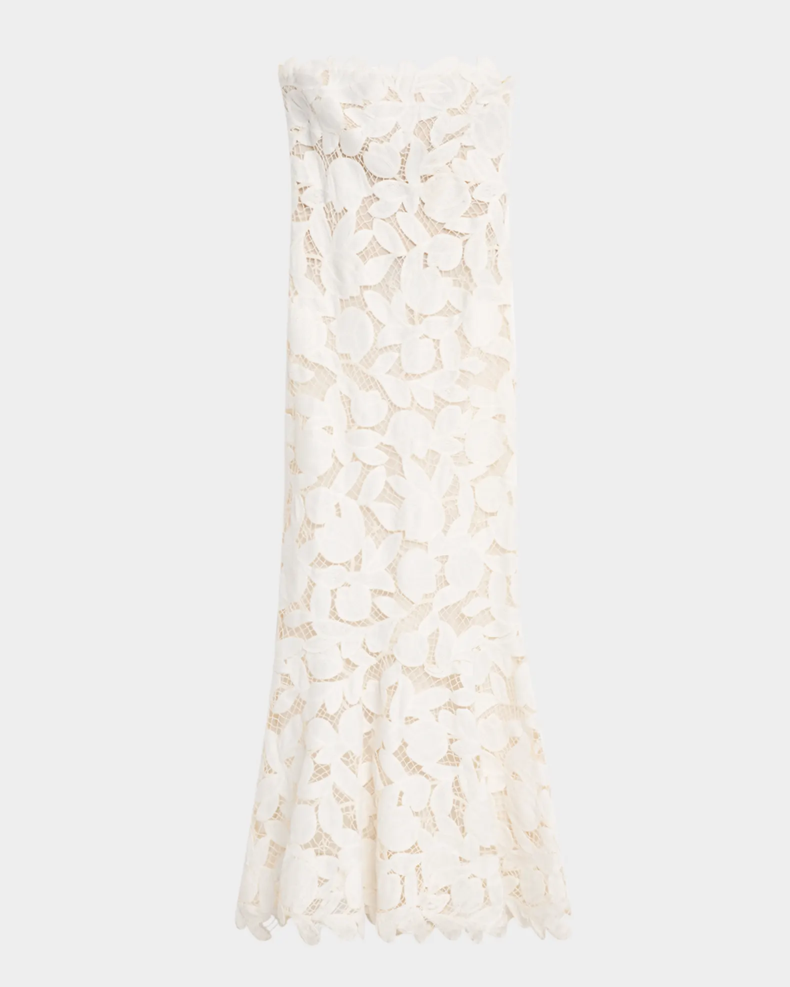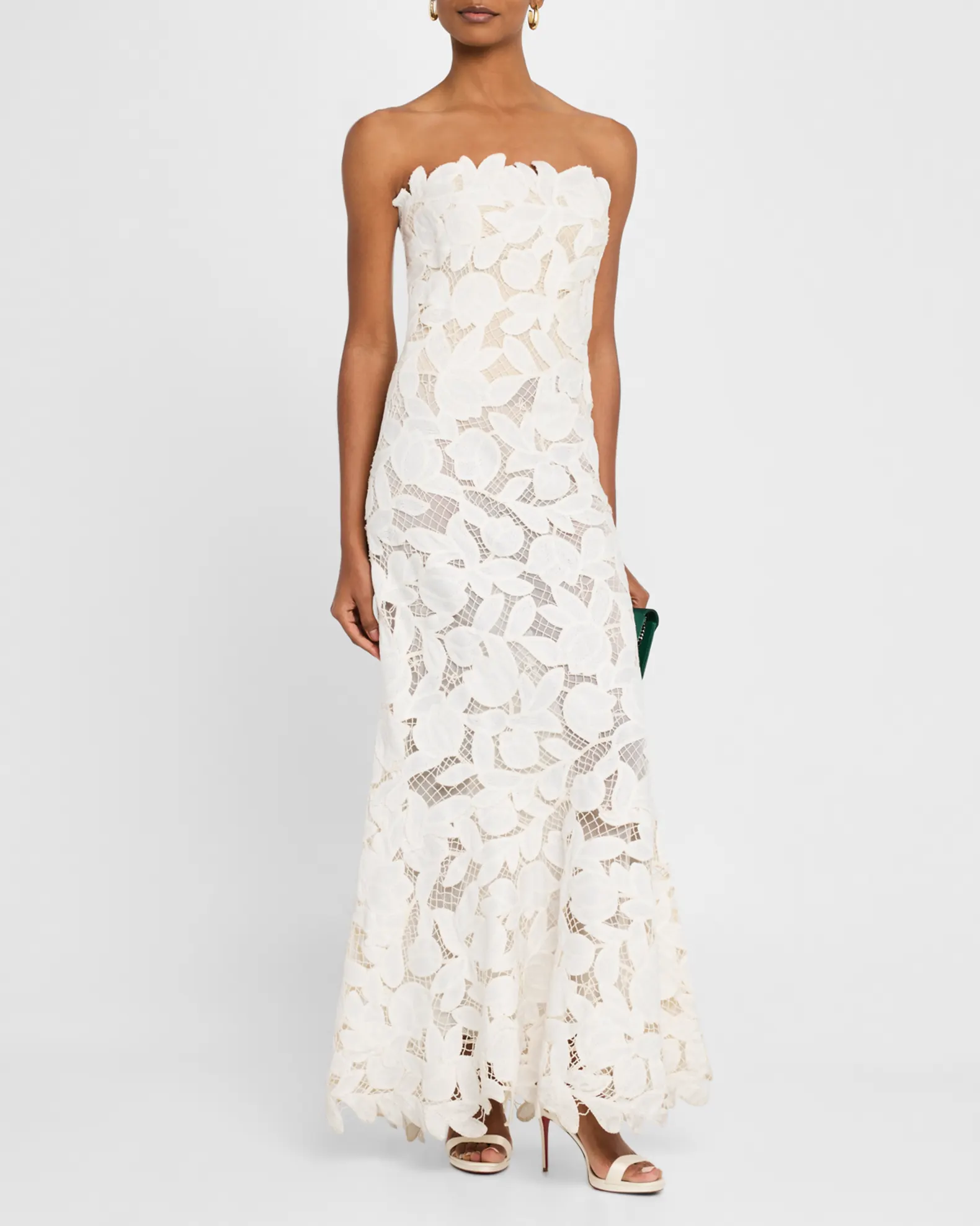 Un vestido que combina romanticismo y sofisticación en cada detalle. El encaje floral aporta textura delicada y un toque femenino, mientras el corte strapless resalta hombros y cuello con elegancia. Su largo maxi fluye con suavidad, creando un efecto etéreo que acompaña cada movimiento. Ideal para bodas, galas o eventos donde deseas transmitir elegancia y presencia sin esfuerzo. Una pieza que transforma cualquier entrada en un momento memorable.
